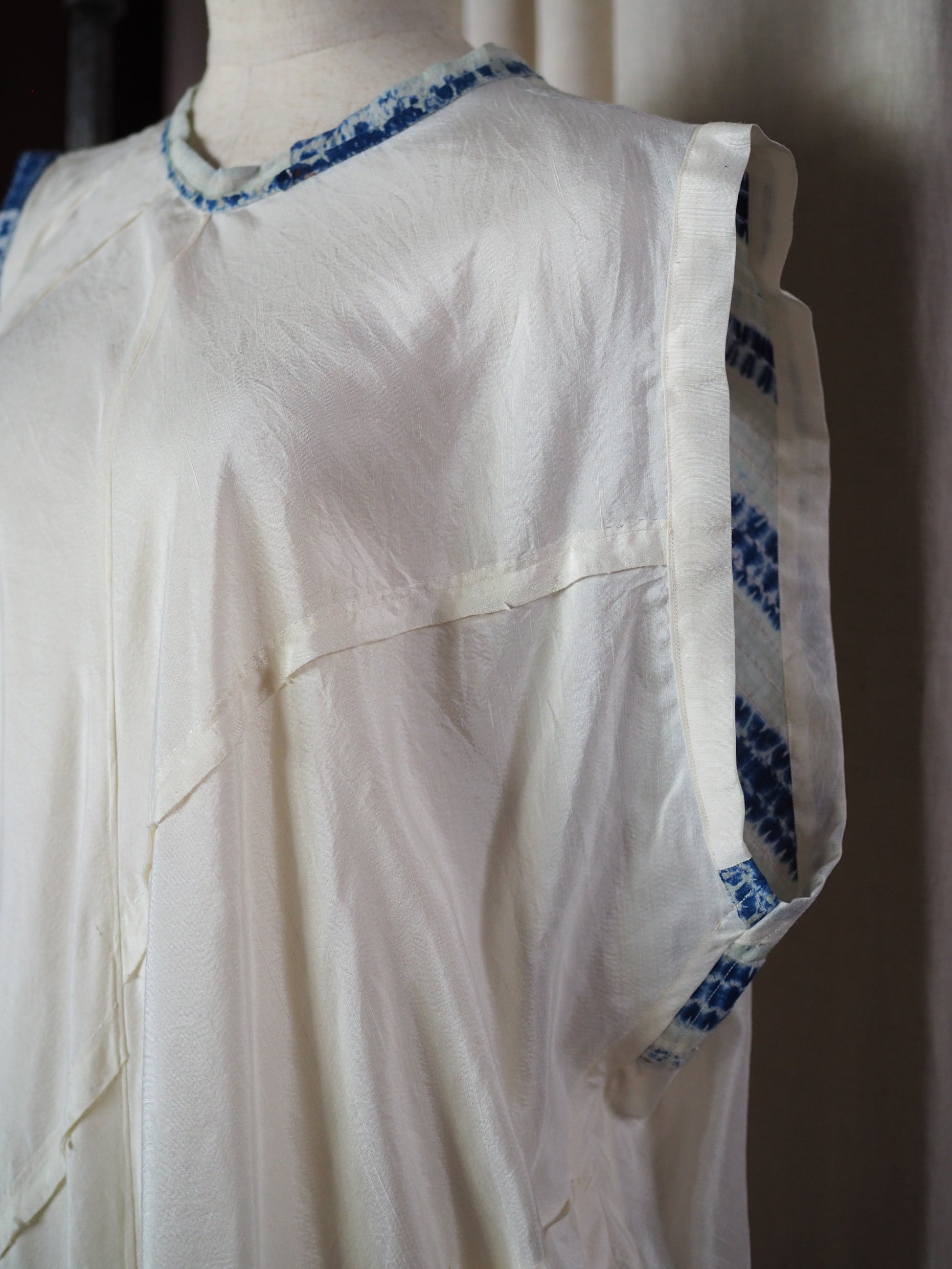 A small considered collection of one off pieces that draw on histories of the hand and the need to continually repair in order to regenerate. All fabrics for this collection were sourced personally from Japan, particularly from the region of Takayama. Most of the fabrics are from the Taisho period, and with age and time gone by, the textiles have an essence of the lived and the past. The garments are all soft and playful, drawing on an ageless aesthetic, where one is both young and wise at the same time, fulfilling the idea that we are never too old to run through a field with our arms out.
