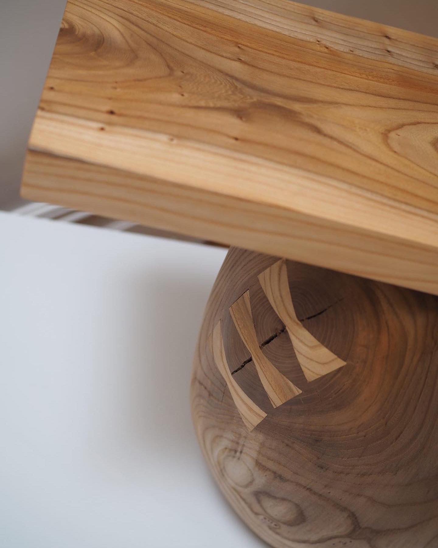 You can see some bow Tsu-gi technique for mending the cracks or No nai,l Japanese building joinery techniques are applied in this furniture range. The detail become a featured of design.