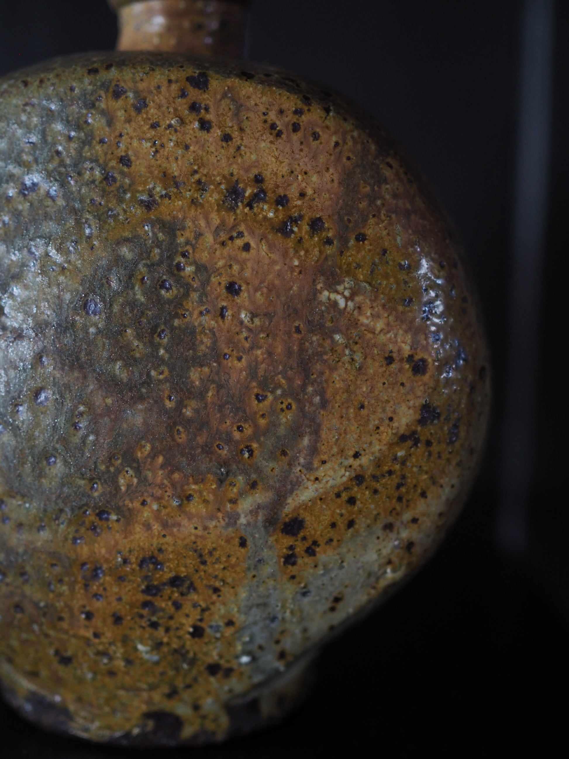 Made with coarse iron-rich New Zealand clay, wood fired with salt glaze.