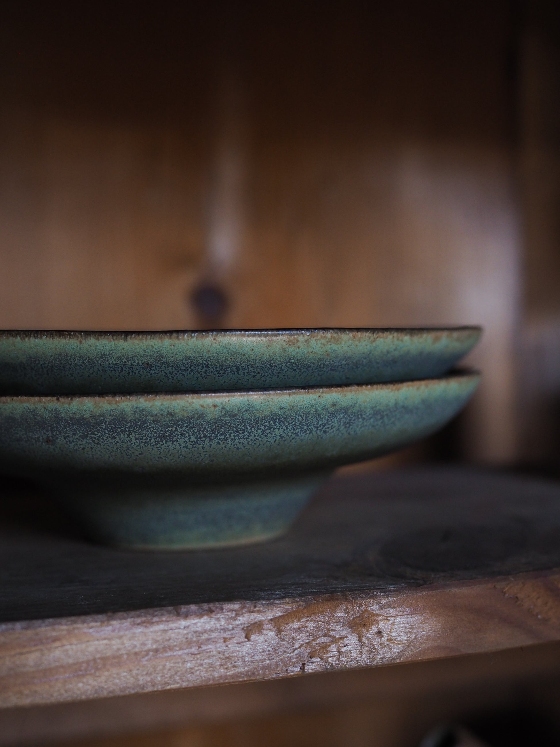 Stoneware, cobalt iron glaze with iron speckles