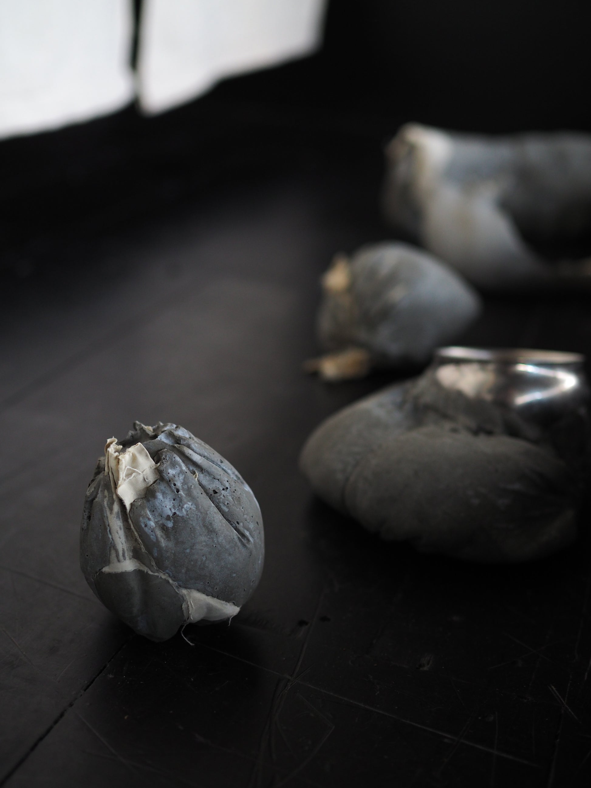Materials: 001 / Cement,ash,cloth 005 / Cement,ash,cloth, metal bowl