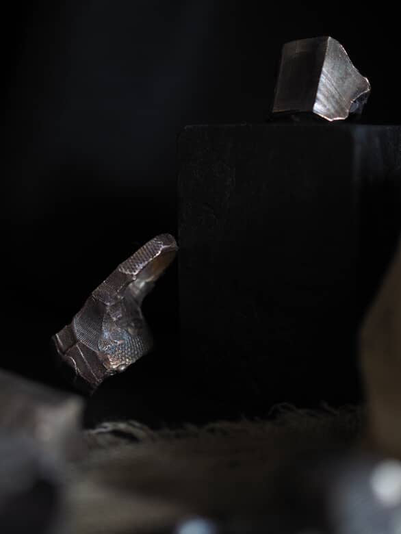 Each piece is tarnished by chemical when kept in proximity to each other, they reactivate such processes, developing a living patina. The purpose given to each object, and how it is inhabited/occupies space determines the evolution of its form.