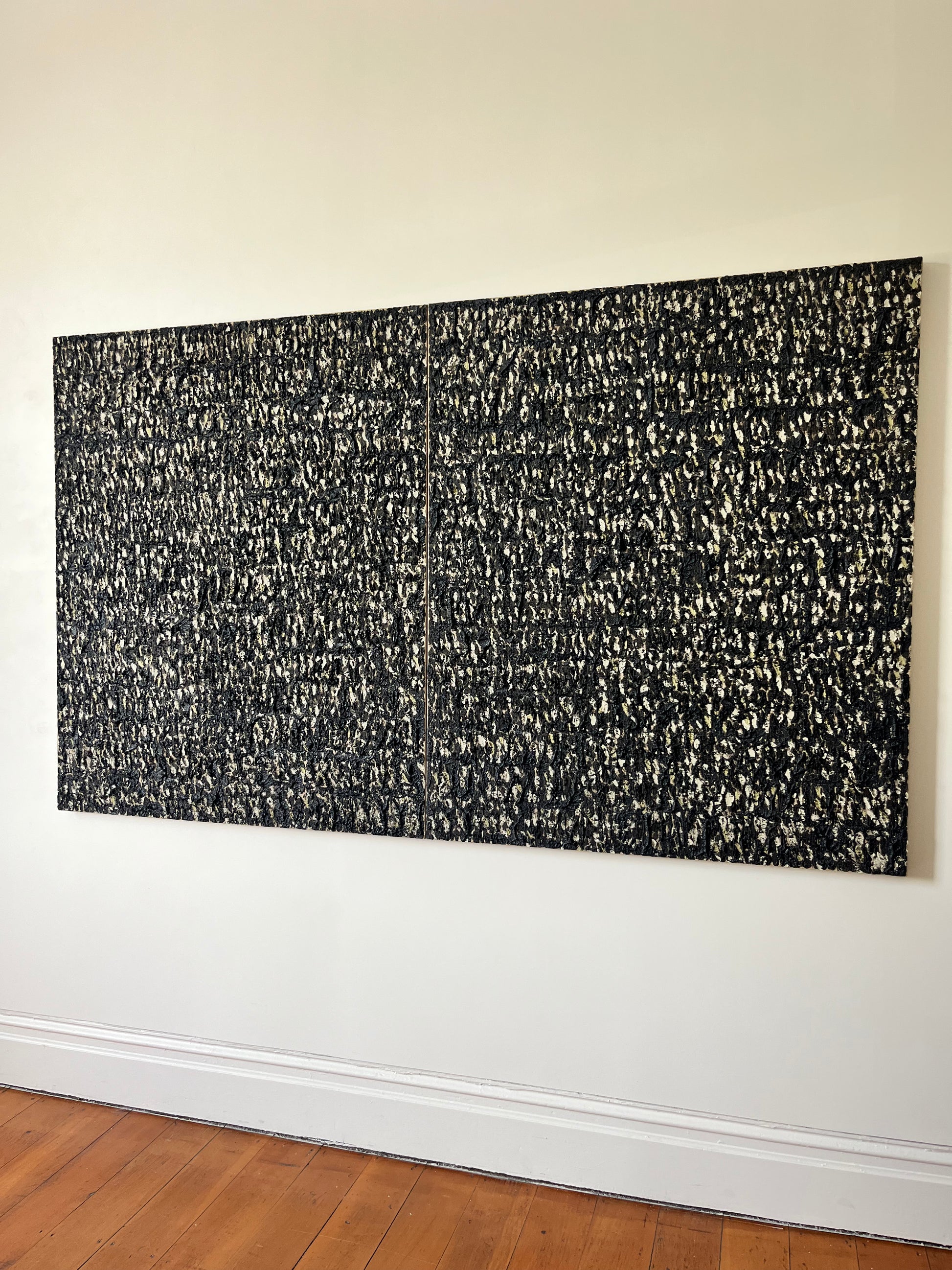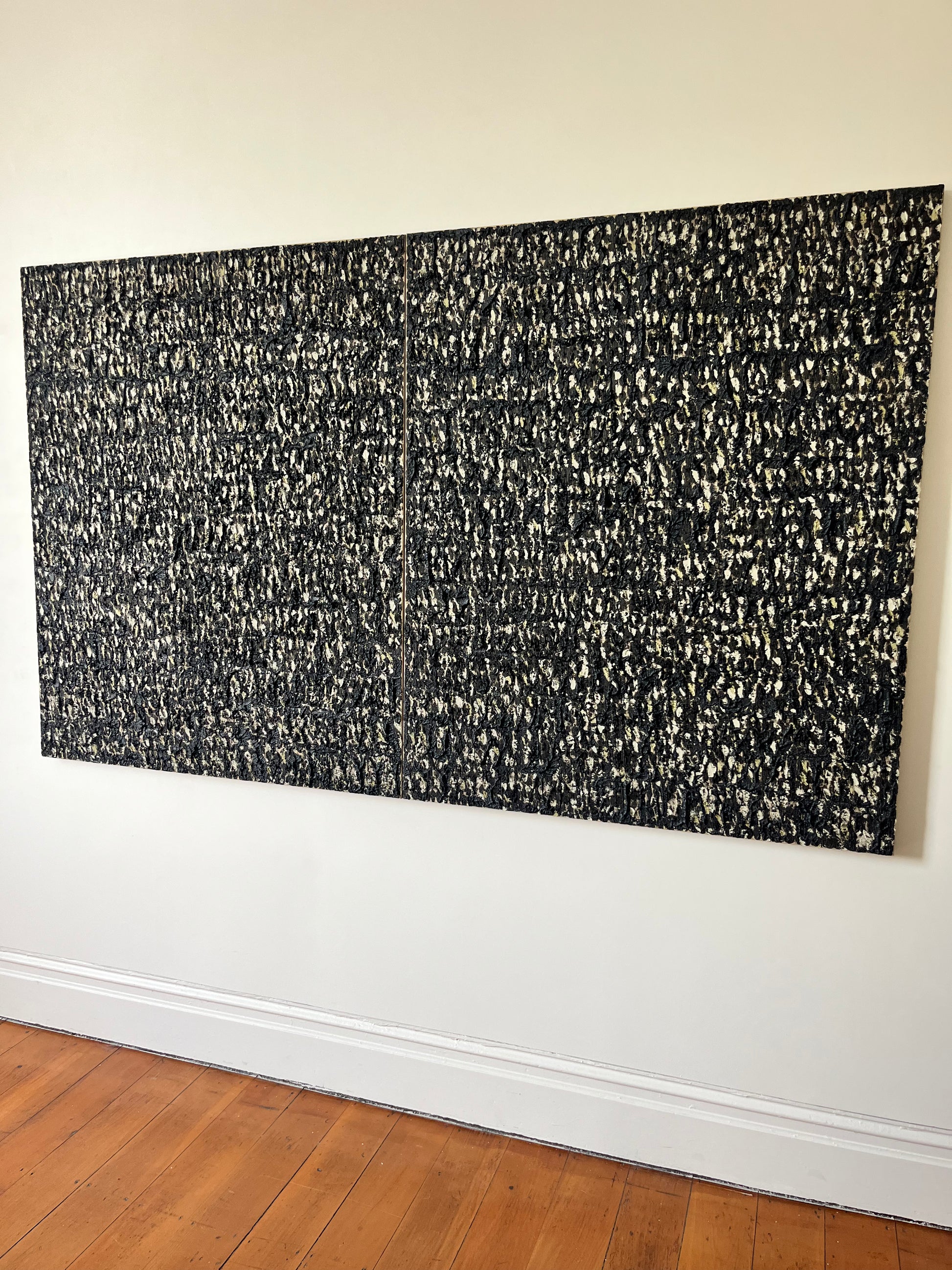 Materials: Oil and incense ash on linen
