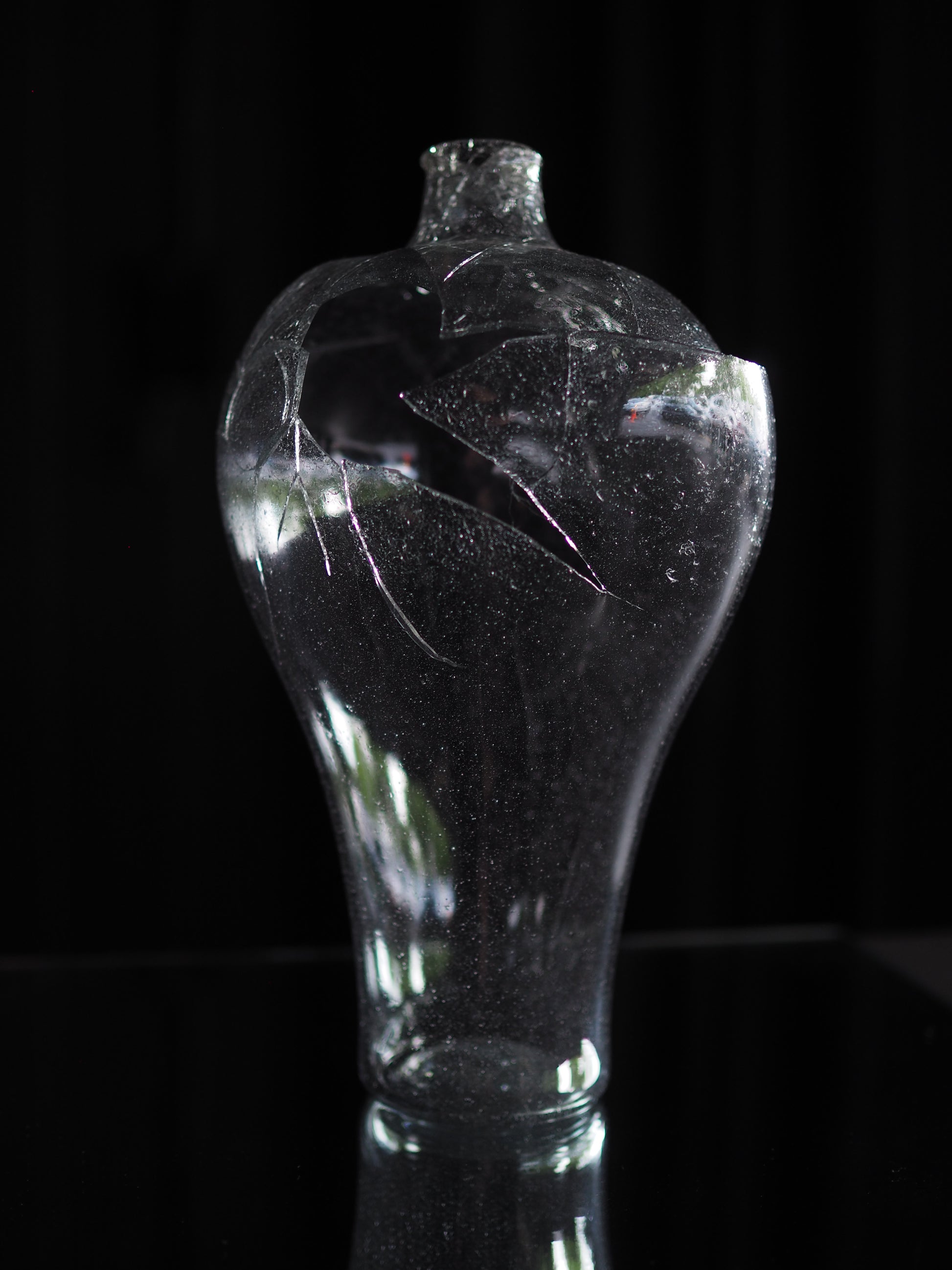 Materials: recycle glass, metals infused with heat and shaped with handblown technique