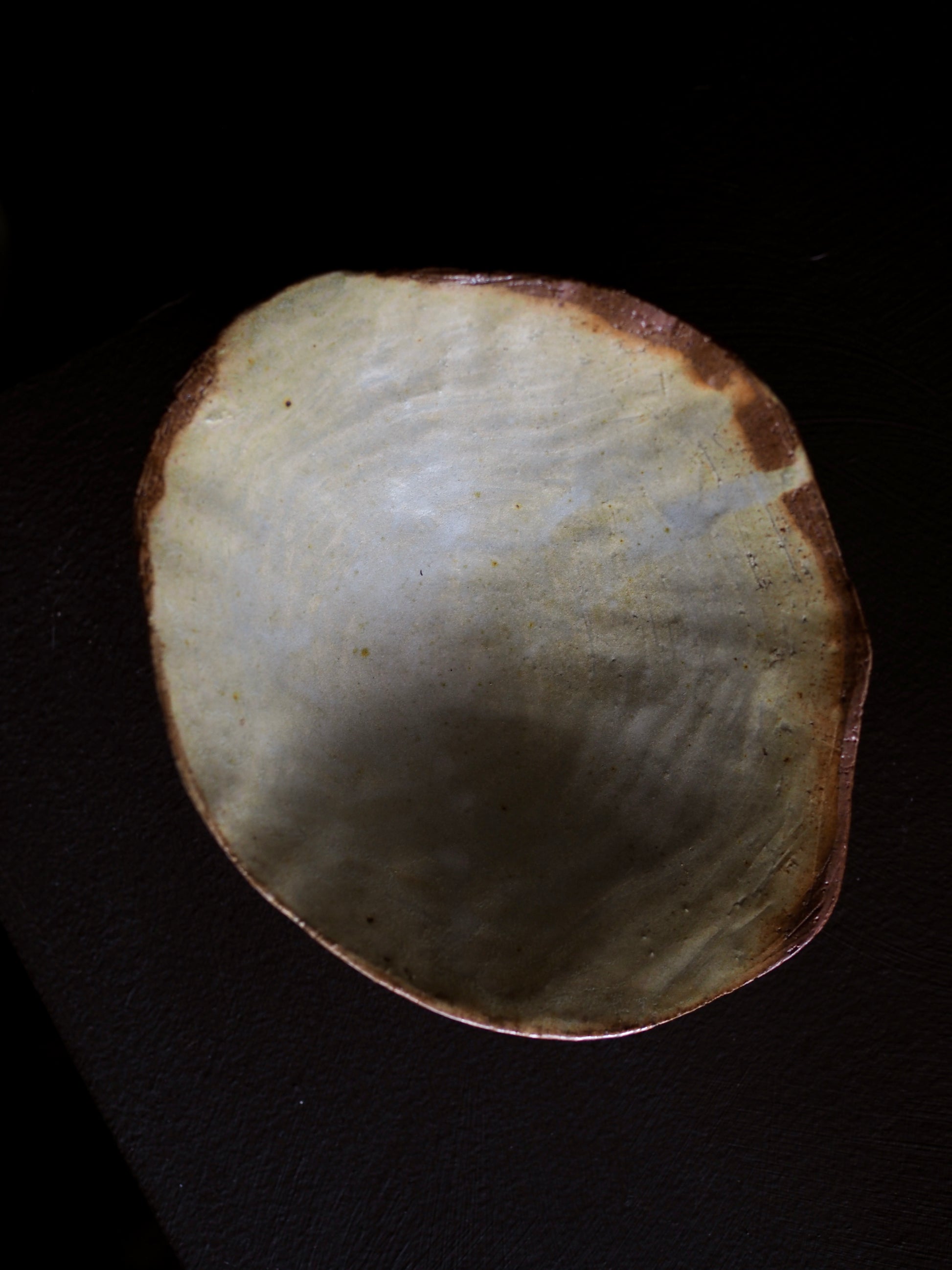 Unglazed inside, black copper glaze outside