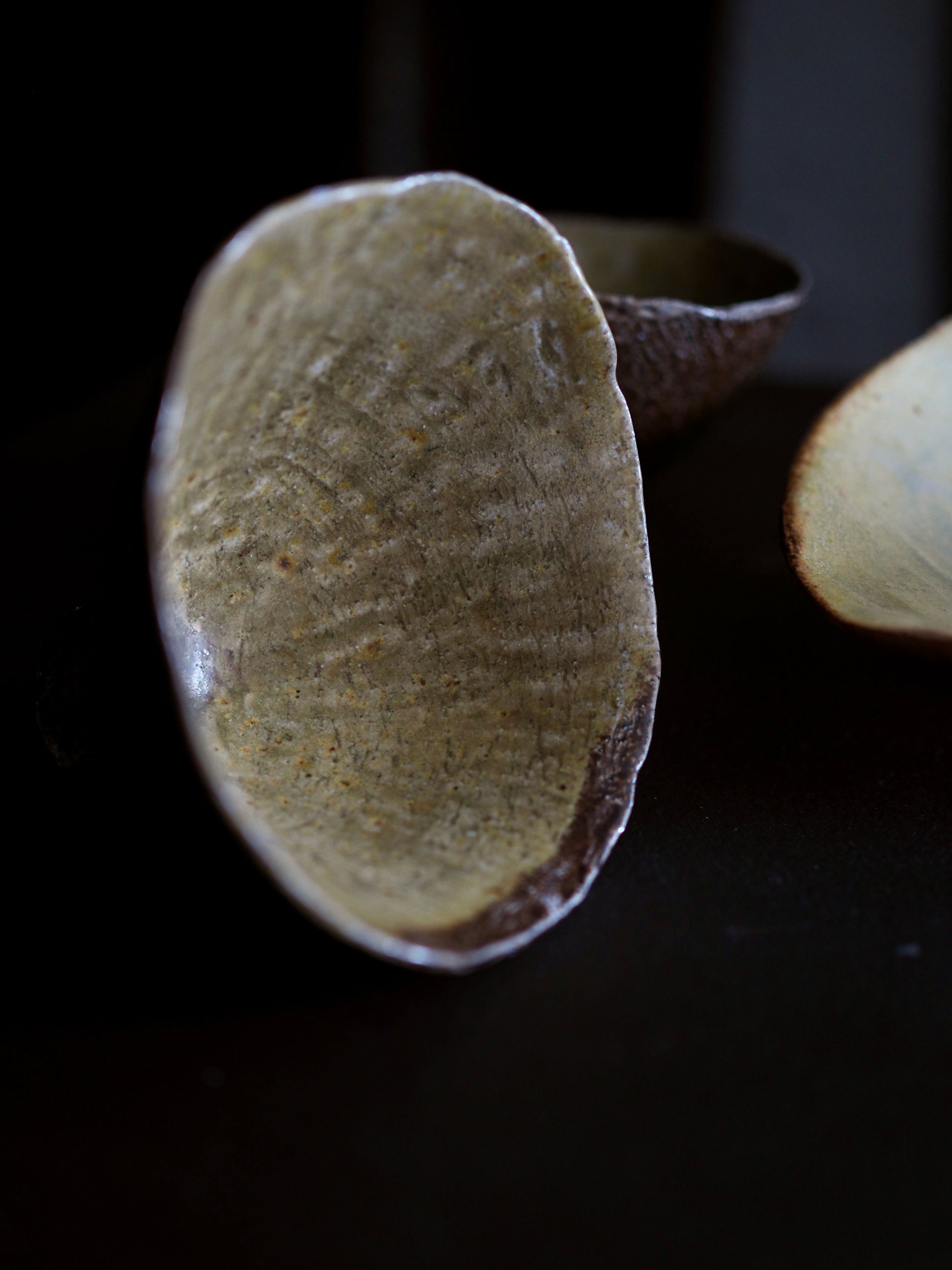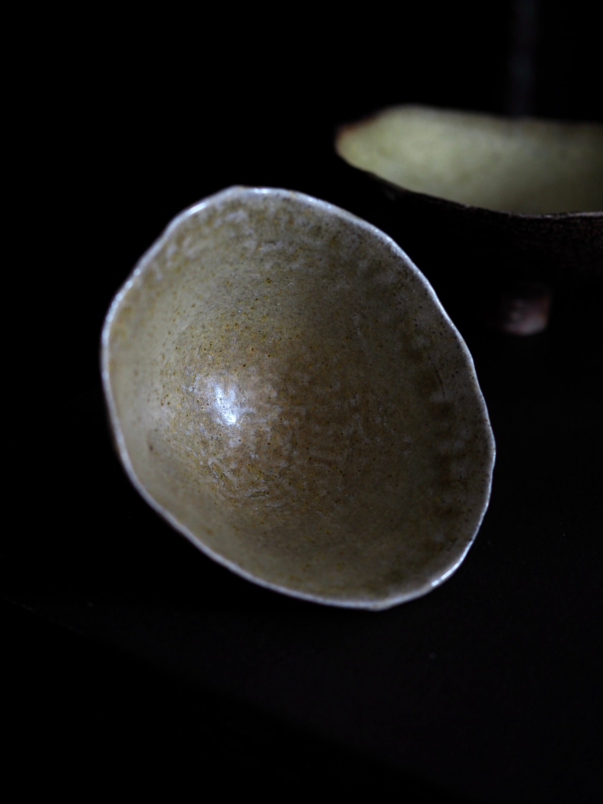Unglazed inside, black copper glaze outside
