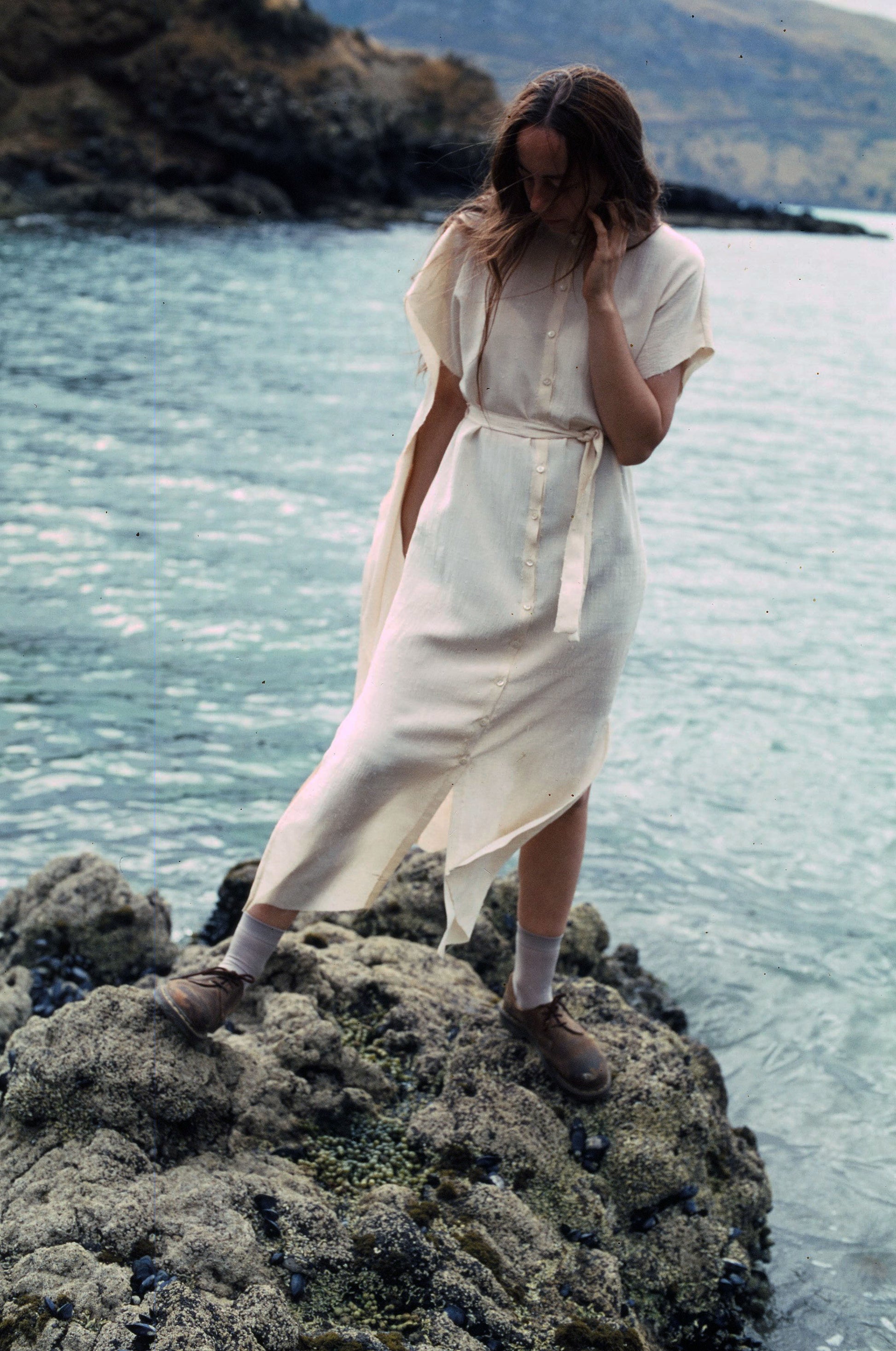 Materials: Ivory silk, mother of pearl buttons
