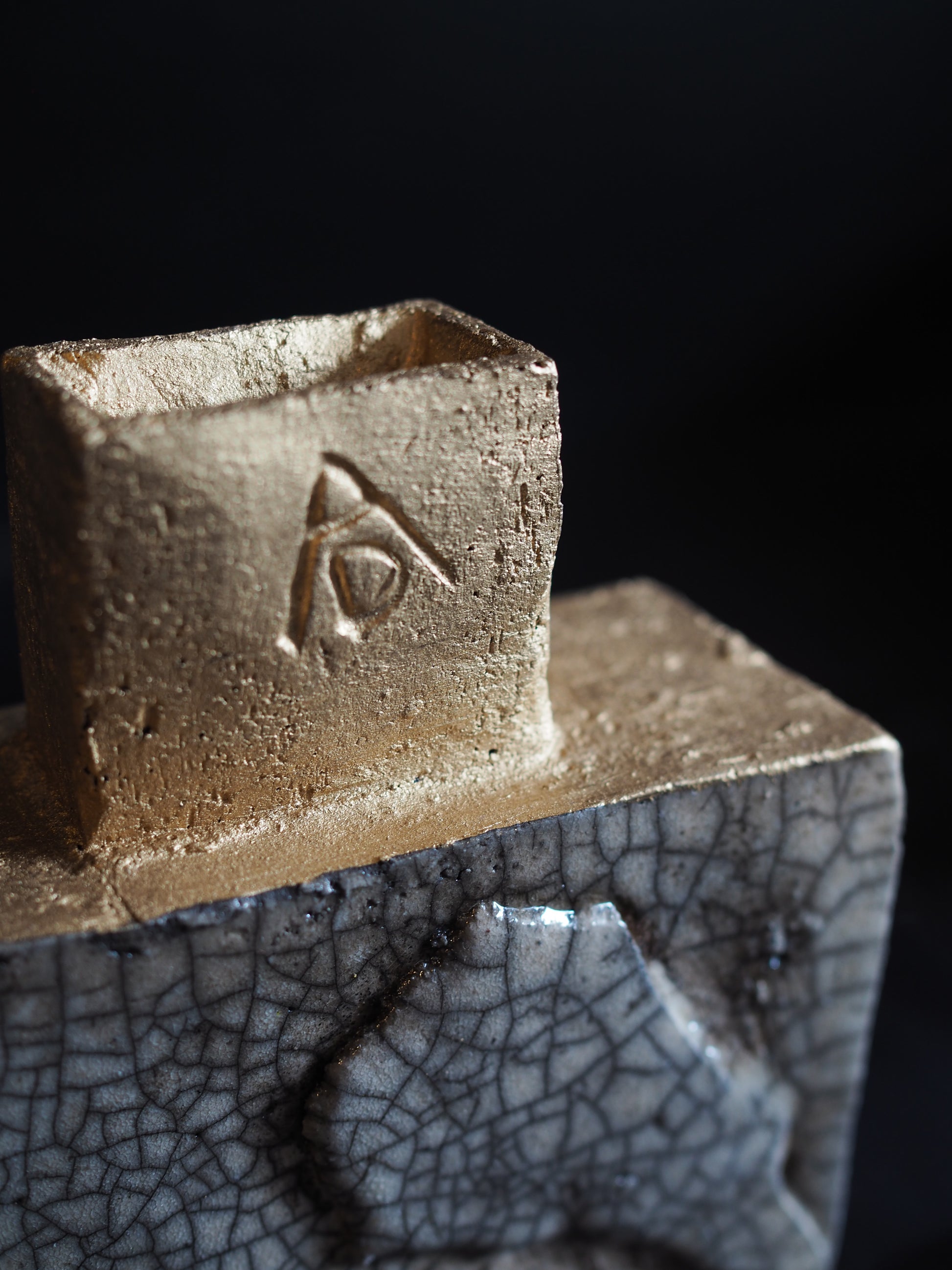 Raku style firing, dynamic form that's implied Māori culture, symbolic shape and meanings.