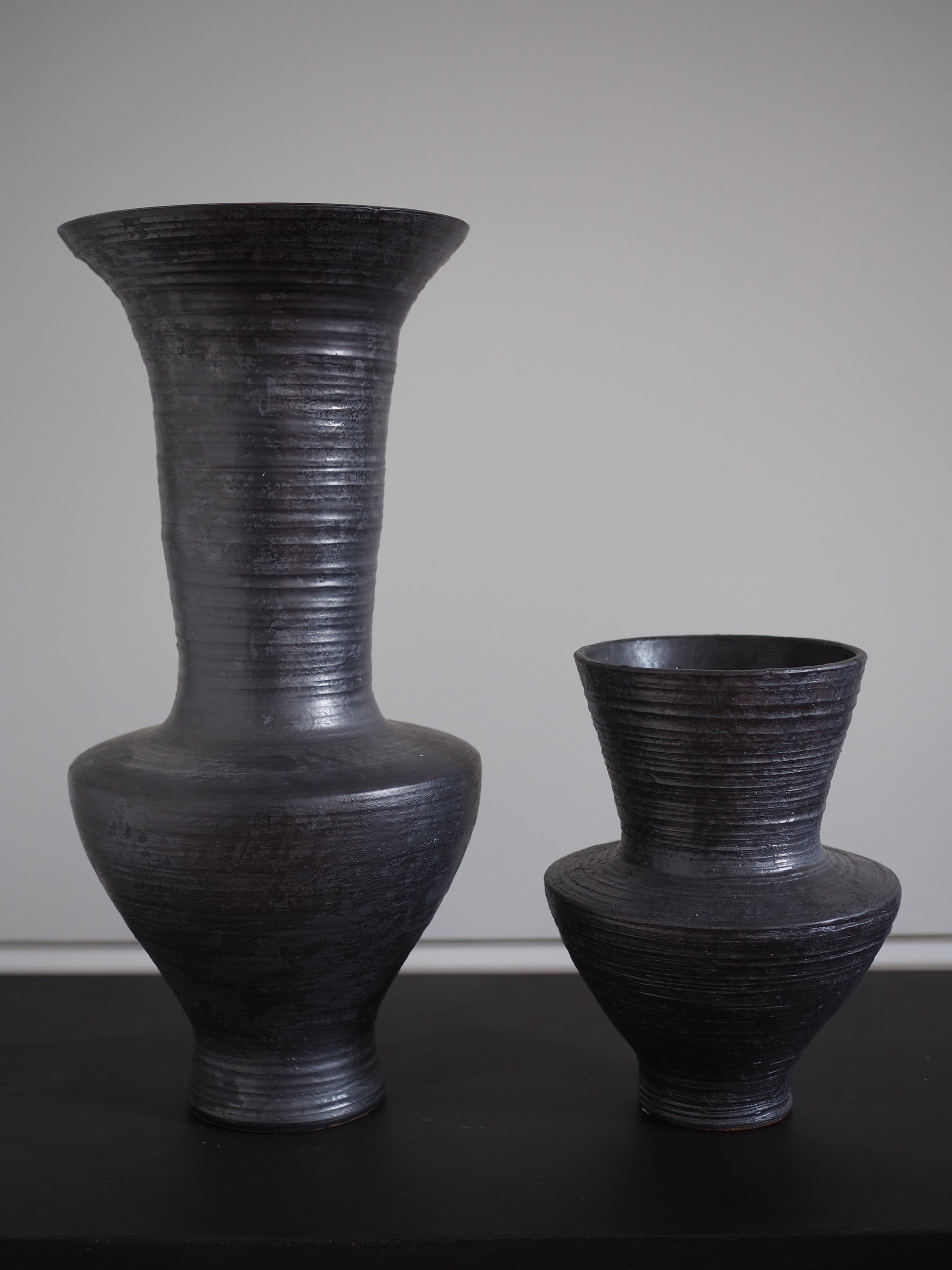 Materials: Clay, Hematite glaze, Bone ash and quartz / marble glass glaze etc