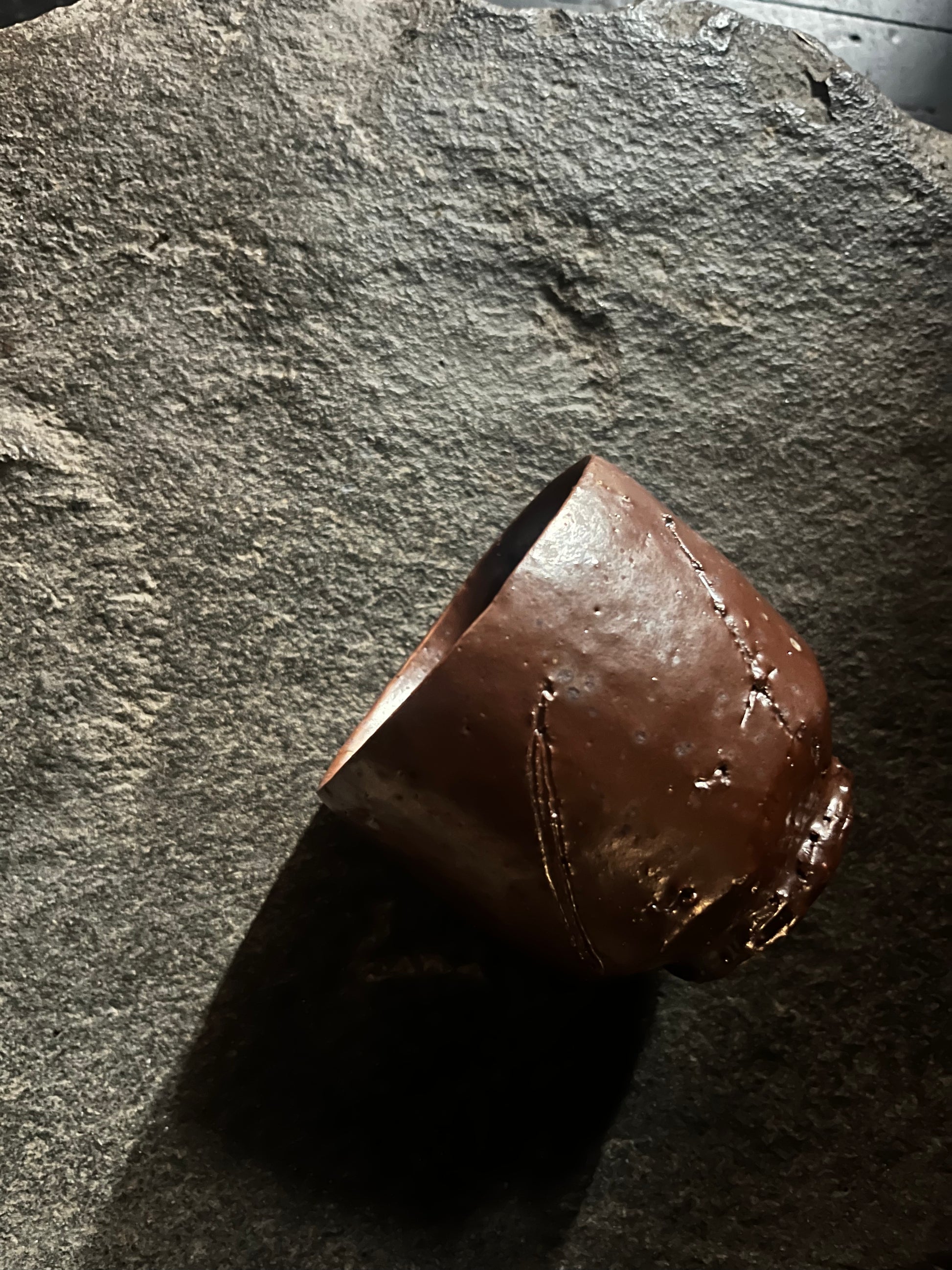 Made with coarse iron-rich New Zealand clay, wood fired with salt glaze.